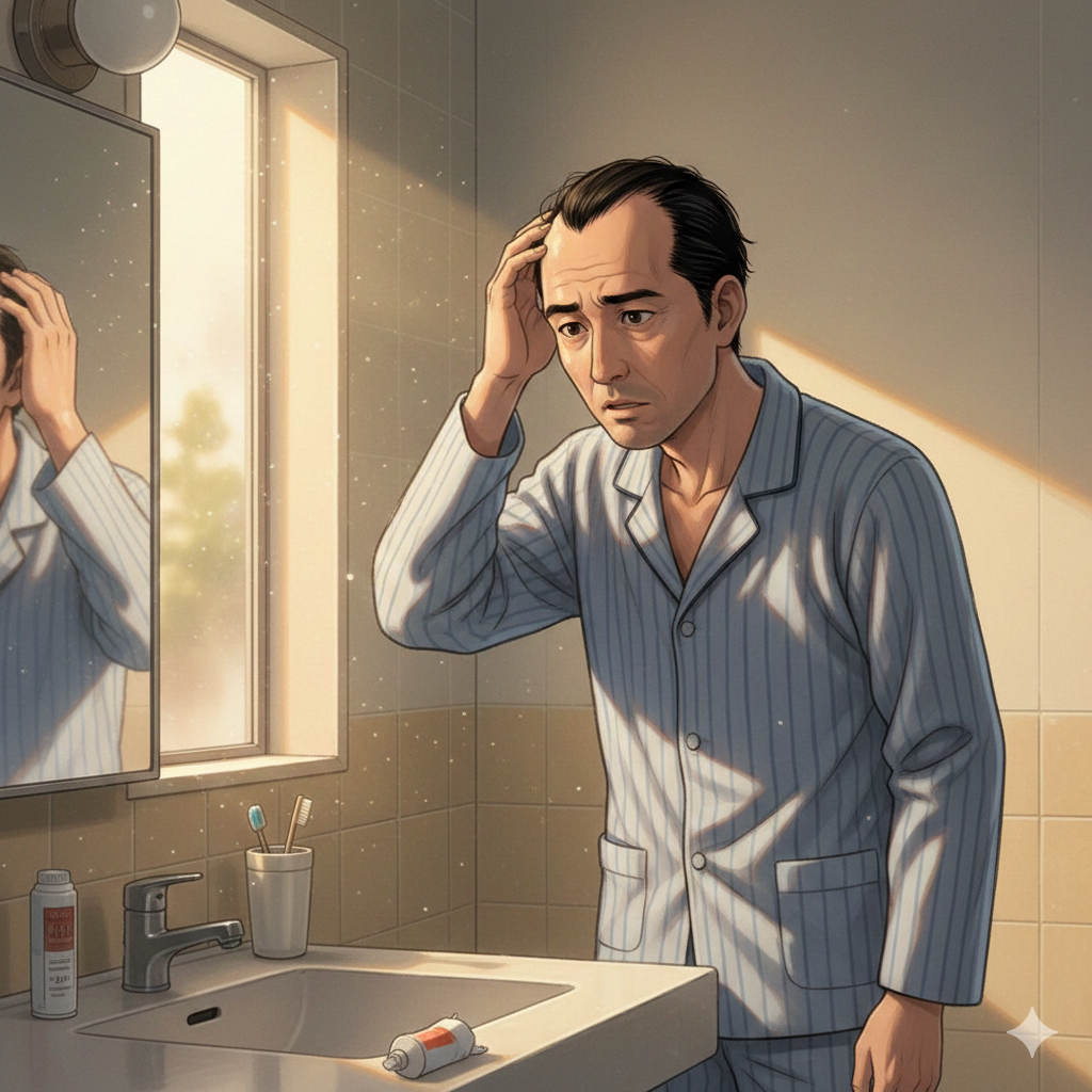 • 📉 久しぶりに会った友人の視線が、自分の目ではなく「おでこ」に向いている気がする