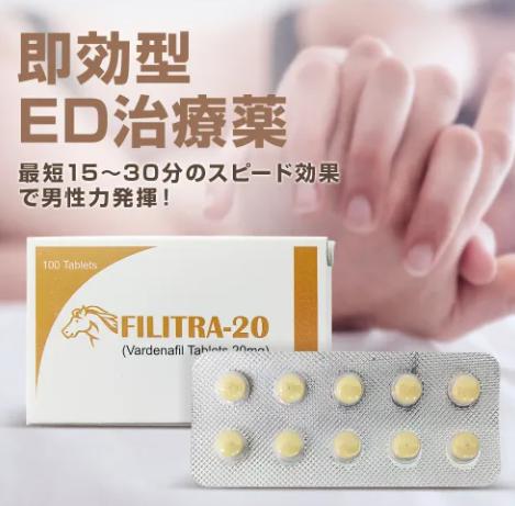 | 商品名 | フィリトラ20mg10錠(レビトラジェネリック) | 商品カテゴリー | ED治療薬(レビトラジェネリック) |